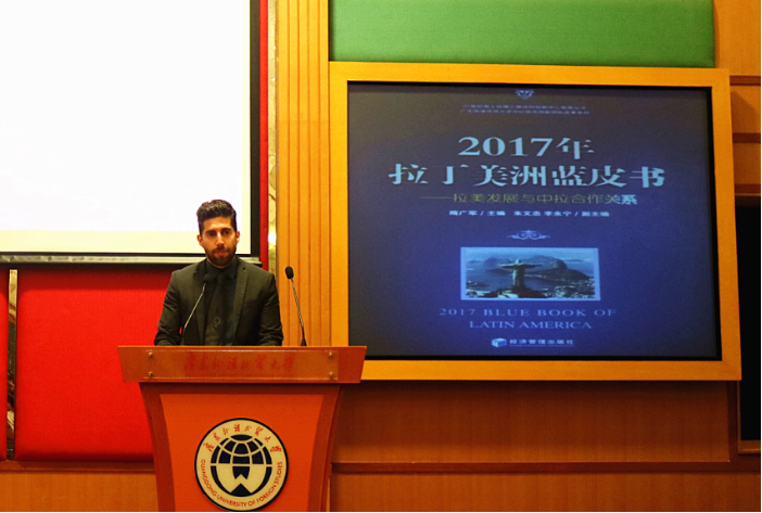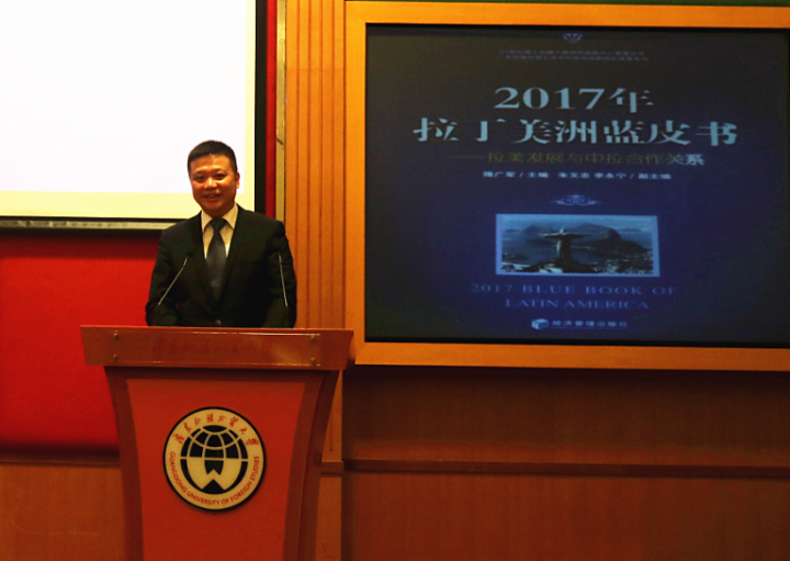 叶桂平作为作者代表发表致辞,他指出,在国家迈入新时代、中拉探讨建设命运共同体等的背景下,《2017年拉丁美洲蓝皮书》表明广外在研究中拉合作关系方面取得了新的进展,也是海内外学术界实务界了解中拉合作关系与发展的较好书籍。澳门城市大学重视与广外的交流合作,期望一起进一步加强中拉研究方面等的合作,探讨更多的学术精品,创造中拉人才培养的更多亮点等。